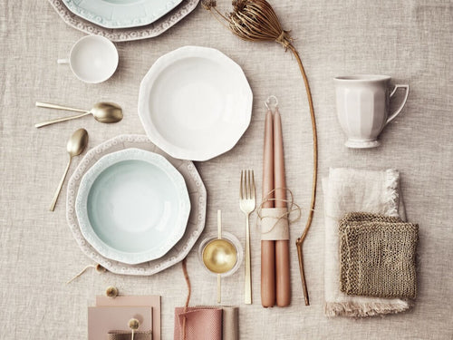 Zeitlose Schönheit in vollendeter Form kommt mit dem Service Maria von Rosenthal auf den Esstisch. Benannt nach der Ehefrau des Firmengründers hat das klassische Service am Design des Biedermeiers Anleihe genommen, wovon die Henkel, aber auch die Bordüre am Fahnenrand der Teller, Schüsseln, Tassen und Becher zeigen. Die Reliefbordüre aus Granatäpfeln und Olivenzweigen ist haptisch erlebbar. Die Serviceteile sind mit sanften zwölf Ecken, symmetrisch rund gestaltet. Das Design Maria gibt es in klassischem Weiß, in zarten Farben oder mit auffälligem Dekor gestaltet.