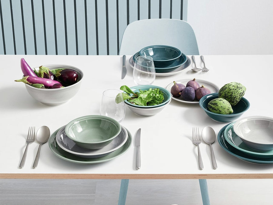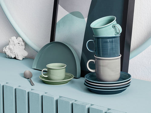 Geschirrserie Thomas Trend: schmeichelndes Design mit Esprit und Klasse Thomas Trend ist zweifellos eine der beliebtesten Porzellanserien aus dem Hause Thomas. Mit ihren harmonischen Formen, ansprechenden Pastelltönen und vielseitigen Einsatzmöglichkeiten verzaubert diese außergewöhnliche Kollektion jede Tafel. Die weiße Basisvariante dieses Geschirrs ist ein preisgekrönter, zeitlos-eleganter Klassiker und seit über 40 Jahren in der gehobenen Hotellerie zu finden. Die Farbvarianten Moon Grey, Moos Green, Night Blue und Weiß sorgen, genauso wie die feine Rillenstruktur, für unverkennbare Individualität und Alltagstauglichkeit der aktuellen Trend-Serie.